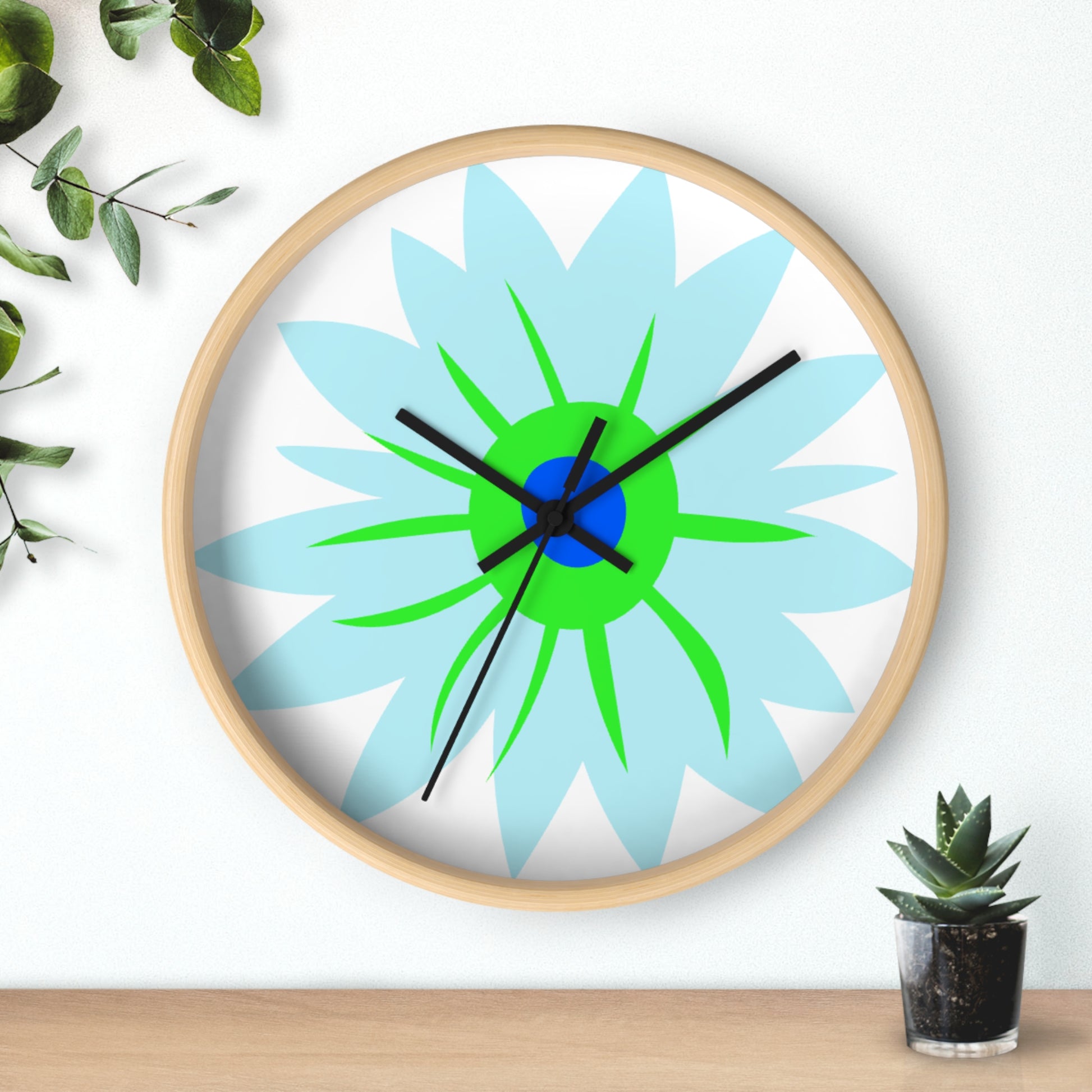 Floral Burst Wall Clock — Blue & Green Modern Flower Design